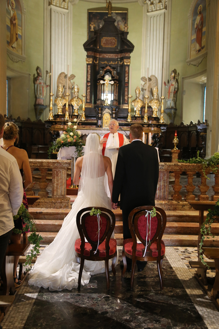 Feierliche Hochzeitszeremonie in der wunderschönen Kirche von Cannero